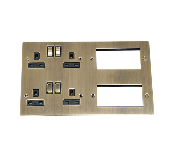 ANTIQUE BRASS 2 x 2 gang DP socket with 2 x 4 gang aperture